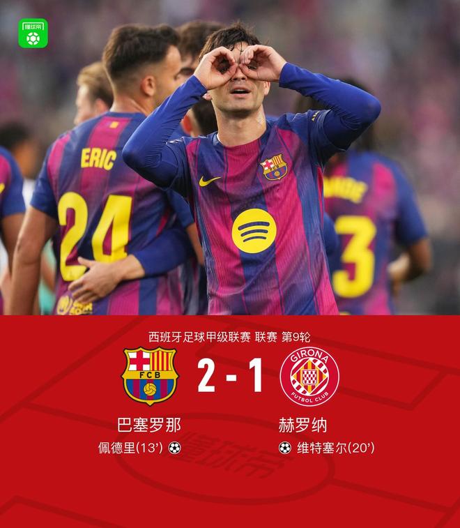 北京时间10月18日,西班牙足球甲级联赛第9轮,赫罗纳主场迎战巴塞罗那。上半场,亚马尔传中,内切佩德里角球破门,随后维特塞尔禁区内倒钩破门。下半场补时阶段,弗里克对判罚不满,裁判出示红牌。随后替补中锋的阿劳霍铲射完成致胜进球。最终,巴塞罗那2-1战胜赫罗纳。关键赛事第13分钟,亚马尔横传,内切佩德里后攻门偏出角球。巴塞罗那1-0领先赫罗纳。第20分钟,维特塞尔禁区内倒钩击中角球。 90+1分钟,赫罗纳1-1追平巴塞罗那。弗里克对判罚不满,第90+3分钟裁判出示红牌。必胜!替补中锋阿劳若铲球,巴萨2-1领先赫罗纳!亮点:双方球员均已入场。比赛开始了居中。西甲球员静静站着抗议海外比赛。官方中断了直播。第3分钟,拉什福德小角度任意球破门。球被加萨尼加扑出。第5分钟,亚马尔传球后突入禁区。然后镜头扩大了。第13分钟,亚马尔横传内切佩德里后角破门。巴塞罗那1-0领先赫罗纳20分。第26分钟,德容接托尼·费尔南德斯传球射门,但皮球被加萨尼加扑出。第32分钟,拉什福德主罚任意球,巴拉击中门框弹出。第39分钟,希尔射门。球击得很高。第40分钟,阿莱克斯·莫雷诺倒三角,维特塞尔的射门偏出。第46分钟,巴萨中场被换下,费尔明上场,换下托尼·费尔南德斯。第47分钟,费尔明远射,皮球被加萨尼加扑出。在t第51分钟,费尔明禁区前射门,皮球击中门框弹出。第53分钟,亚马尔远射,皮球被加萨尼加扑出。第61分钟,库巴西进球,但埃里克·加西亚犯规,进球无效。第66分钟,拉什福德杀入禁区近角,皮球被加萨尼加扑出。第71分钟,拉什福德禁区内倒地。裁判宣布没有踢球。第75分钟,镜头显示亚马尔被换下。第90+1分钟,弗里克对判罚不满,裁判出示红牌。 90+3分钟,必胜!替补中锋阿劳若铲球,巴萨2-1领先赫罗纳!第90+4分钟,阿劳若脱衣庆祝,裁判出示黄牌。比赛报告详细信息已更新...球队阵容技术统计